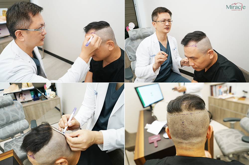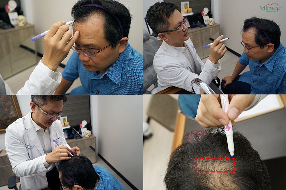 接下來院長就會標註記號在待會需要種髮的地方囉~