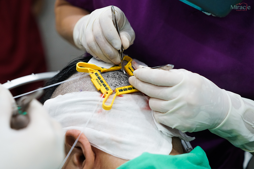 機器鑽洞後,取髮師會迅速將您的毛囊取出,放置於培養皿中提供給分髮師分髮。