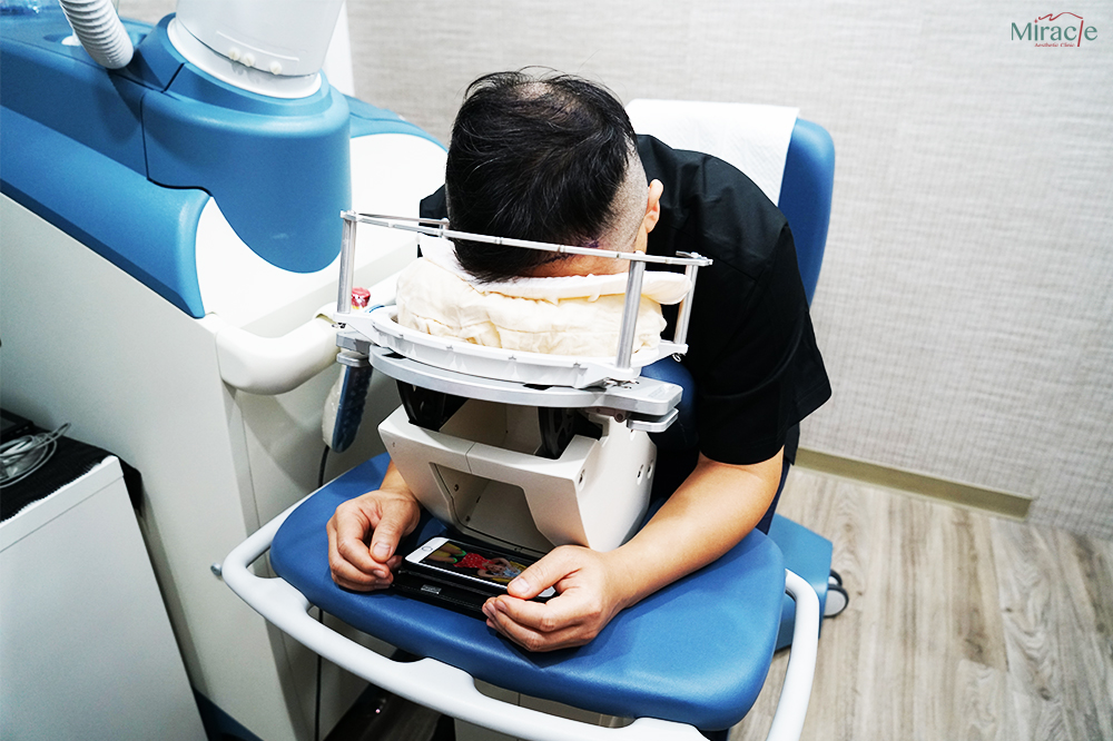 第一次來米秝琪諮詢師先幫黃主任做頭皮檢測,稍微跟主任解釋他目前頭皮的狀況~主任頭髮的覆蓋度跟粗細度其實都是不夠的,關於覆蓋度的部分大家可以看看下面院長拍攝的頭髮衛教影片,看完影片後我們再來看主任頭皮檢測的結果,會更好理解喔~