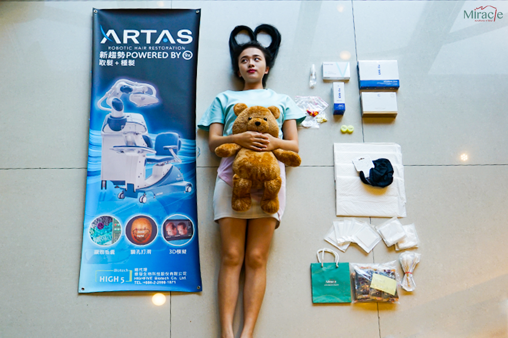 手術結束後,會由護理人員幫您把有取髮傷口的部份包紮起來,3天後才能拆掉換藥,診所還會附上一條運動頭巾,讓您看起來像是去運動而不是手術~