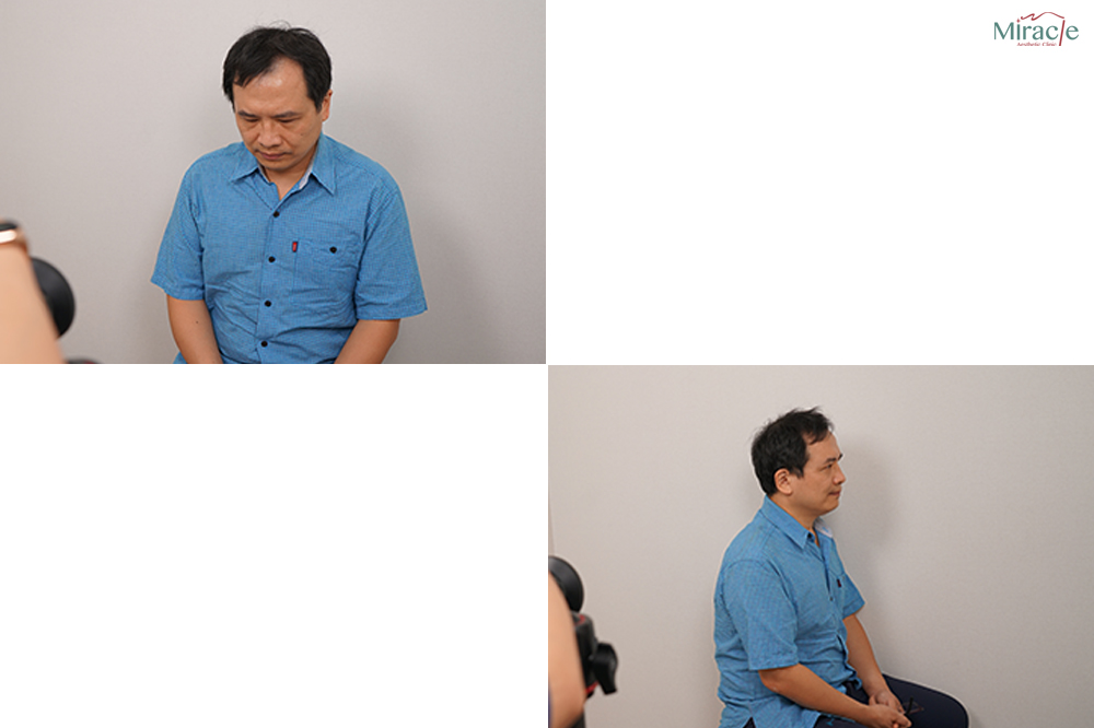 黃院長在幫主任諮詢,兩位醫師的對話真是太深奧~另外補充一個小知識,人臉比例是上下臉個三分之一比例是最好看的,由此為基準去評估客戶髮際線需要往前推的程度。
