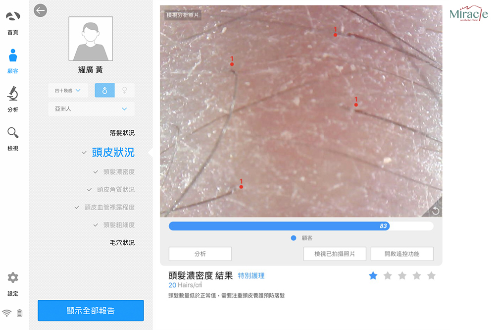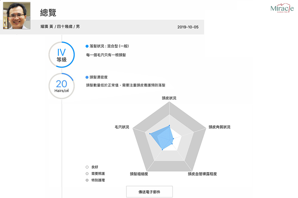 第一次來米秝琪諮詢師先幫黃主任做頭皮檢測,稍微跟主任解釋他目前頭皮的狀況~主任頭髮的覆蓋度跟粗細度其實都是不夠的,關於覆蓋度的部分大家可以看看下面院長拍攝的頭髮衛教影片,看完影片後我們再來看主任頭皮檢測的結果,會更好理解喔~